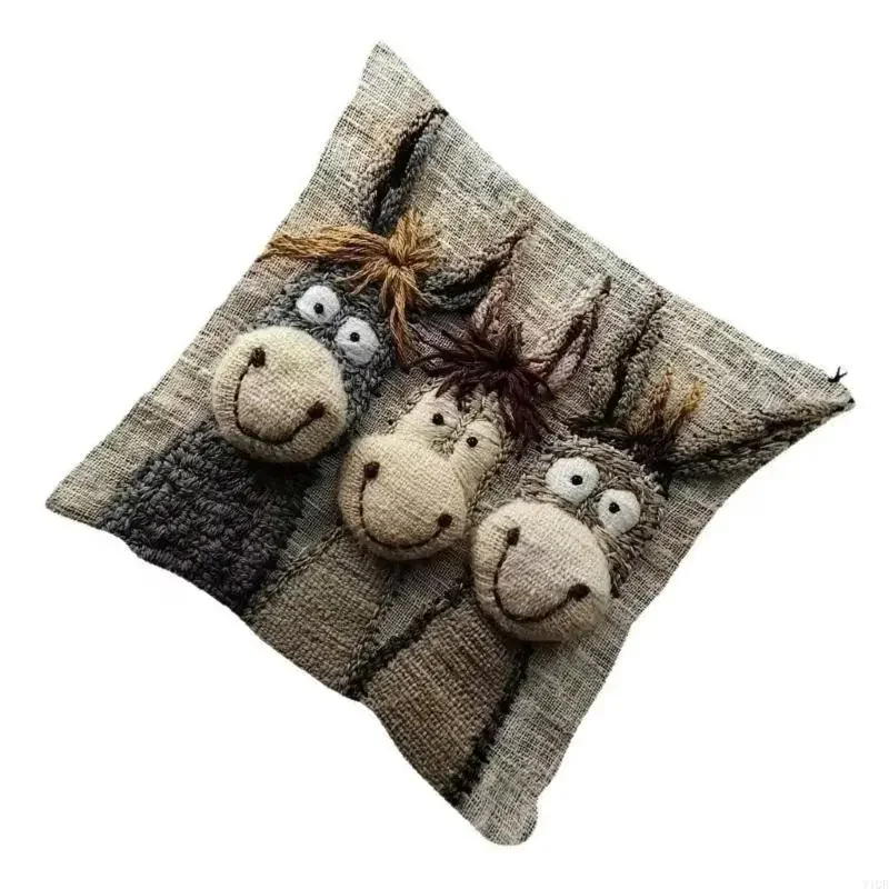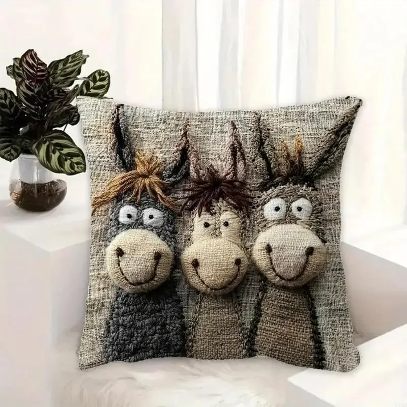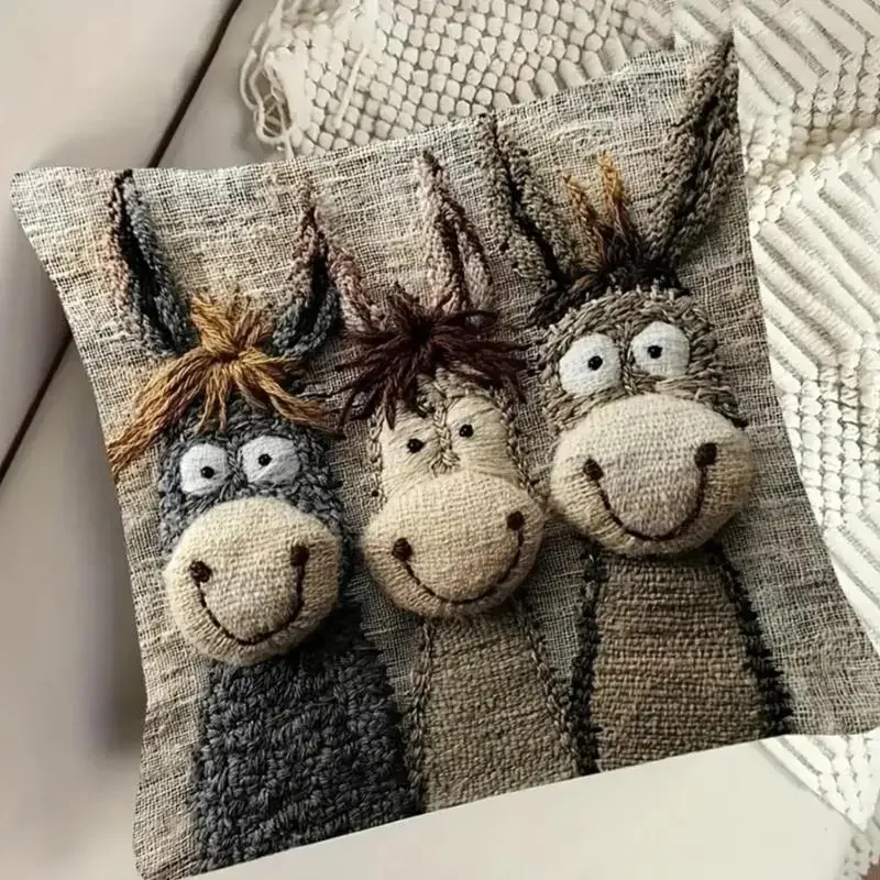 This donkey pillow cover features charm embroidered designs that instantly adds personality to your home decoration, making it a delightful focal point for any room.